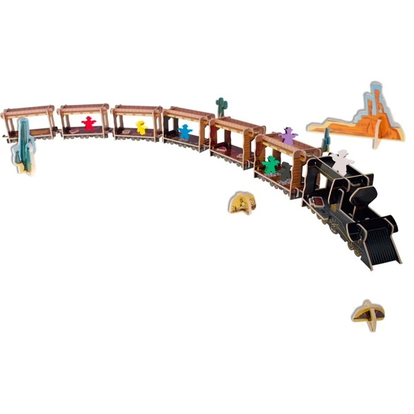 | Inhalt/Ausstattung | 132 Karten, 1 Lokomotive zum Zusammenbauen, 6 Waggons zum Zusammenbauen, 10 Gelände-Teile, 26 Beuteplättchen, 7 Spielfiguren, 1 Regel | ||