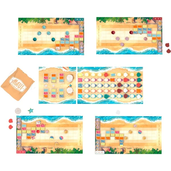 Einheimische und Touristen ziehen jeden Tag an den Strand, um sich einen guten Platz für ihr Handtuch zu sichern und den großartigen Blick auf den Ozean vor Hawaii zu genießen. Nur wer den Sonnenanbetern die perfekten Liegeplätze an diesem fantastischen Strand verschafft, hat in diesem Spiel Chancen auf den Sieg. Maui ist ein cleveres Familienspiel mit ganz viel Urlaubsflair. Es geht darum, seine Handtücher möglichst gut zu platzieren und so am Ende die meisten Punkte zu erhalten. Eine zusätzliche Herausforderung bietet die Krabben-Variante: Hier muss den Zangentierchen möglichst ausgewichen werden.