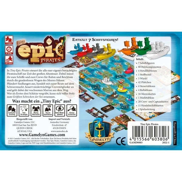 In Tiny Epic Pirates werden die Segel gesetzt: 1-4 Spieler übernehmen die Kontrolle über ein Piratenschiff – mit dem Ziel, möglichst viele Reichtümer anzuhäufen und am Ende der mächtigste Pirat zu werden. Das Spielgeschehen dreht sich um Plündern, Handeln, Besatzung aufstocken, Angreifen oder Suchen. Ahoi ihr Landratten – auf an Bord!Art.-Nr.: 1902448