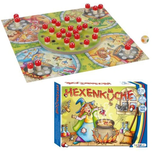 | Inhalt/Ausstattung | 1 Pappspielplan, 1 Drehscheibe, 28 Holzpilze, 1 Farbwürfel | ||