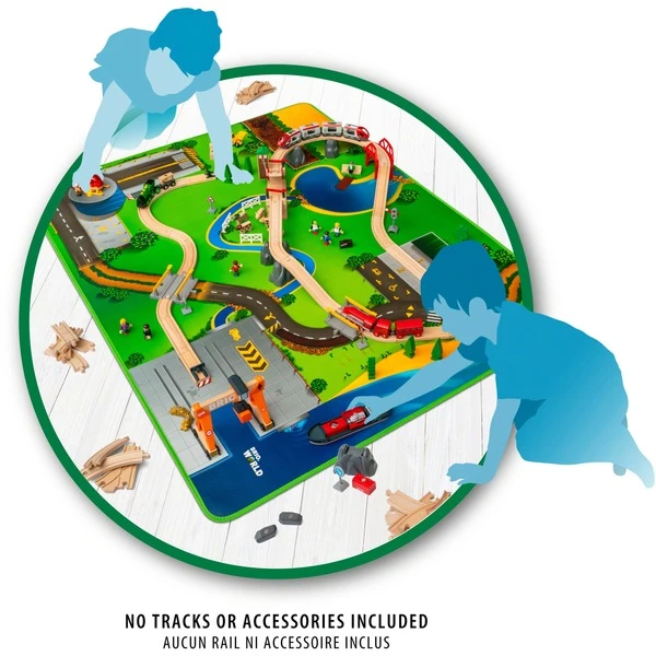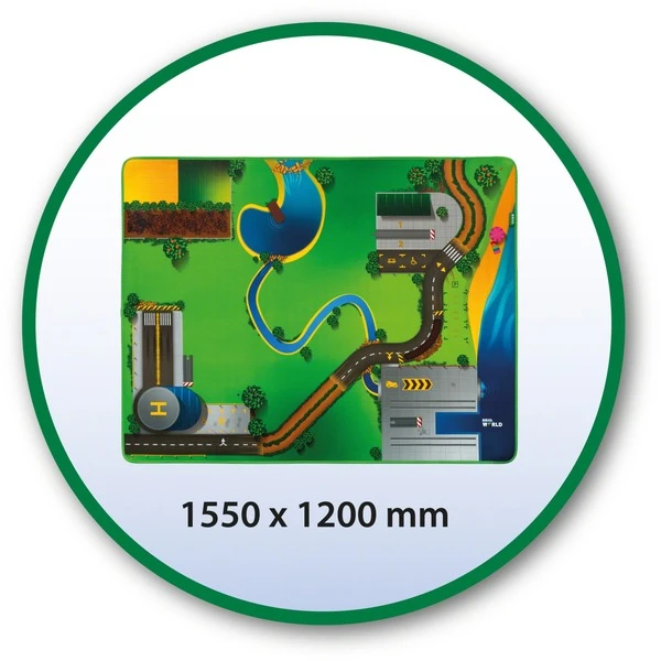 Auf dieser BRIO World Spielmatte kann deine Eisenbahn so richtig durchstarten. Im ansprechenden und farbenfrohes Design ist sie ideal für offene Streckenführungen und das klassisches Fahrzeugspiel geeignet. Sie zeigt einen Flughafen, Ackerland, einen Hafen und wunderschöne Landschaften. Die Spielmatte hat eine Größe von 155 x 120 cm und ist aus 3 mm starkem schadstofffreiem Weichschaum, der einfach zu reinigen ist und auf dem es sich bequem spielen lässt. Wenn du genug gespielt hast, lässt sie sich zur praktischen Aufbewahrung bis zum nächsten Mal einfach zusammenrollen und -binden.Art.-Nr.: 1716183