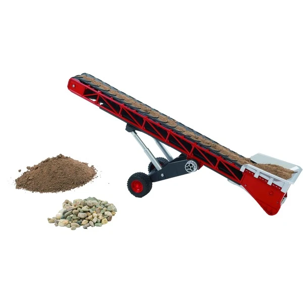 | Inhalt/Ausstattung | Fahrzeugaufbau: klappbare Deichsel; Fahrwerk: höhenverstellbares Fahrgestell; Bewegung/Funktionen: handbetriebenes (Kurbel) Weichkunststoffband, realistisches Gummiförderband | ||