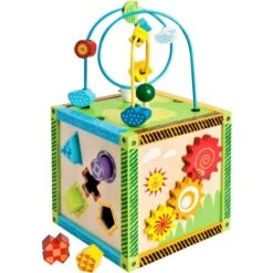 Das Spielcenter von Eichhorn Color sorgt für unendlichen Spielspaß durch die vielen unterschiedlichen Aktivitäten, die dieser Würfel bietet. Diese Spielmöglichkeiten fördern den Lernprozess der Kinder und unterstützen die Entwicklung des Feingefühls mit Hilfe der Motorikschleife, des Sortier- und Zählrahmens, der 5 Steckbausteine und des Drehspiels.Art.-Nr.: 1195515
