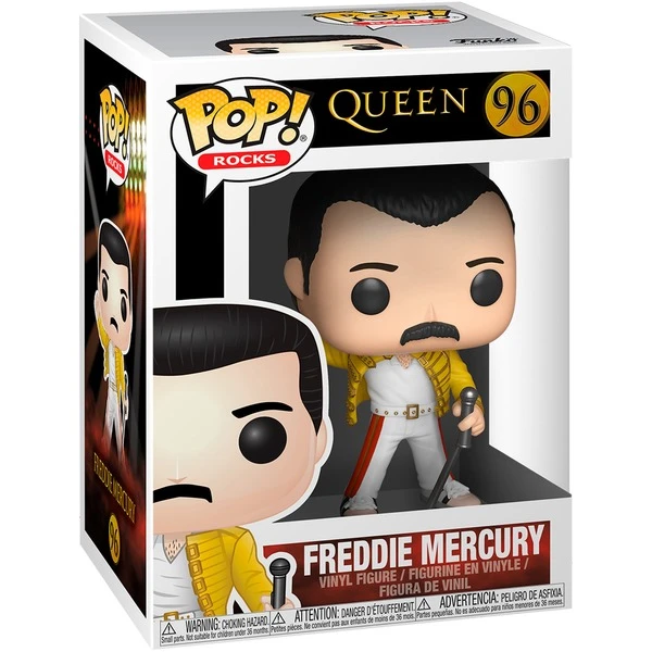 Mit den Figuren der Serie POP! von Funko kommt Popkultur nach Hause – zum Sammeln, Ausstellen und Spielen. Diese hochwertig verarbeiteten Vinyl-Figuren zeigen bekannte Charaktere aus Kino, Fernsehen und Comics. Diese Figur zeigt Queen-Sänger Freddy Mercury in seinem ikonischen Outfit vom Wembley-Konzert 1986. Die Figur ist etwa 9,5 cm groß.Art.-Nr.: 1904005
