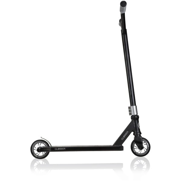 Der GS 720 macht mit stabilen Materialien so gut wie alles mit: Dieser Stuntscooter verfügt über eine 360°-Lenkung und einen gebogenen Lenker mit ergonomischen Griffen. Die Stahl-Vorderradgabel ist für anspruchsvolle Tricks verstärkt. Der GS 720 steht auf PU-Rollen mit Aluminium-Felgen, einem Durchmesser von 110 Millimetern und zwei Pegs für anspruchsvolle Stunts. Am Ende des stabilen Aluminium-Decks befindet sich die Hinterradbremse aus Carbon. Der GS 720 ist für ein maximales Nutzergewicht von 100 Kilogramm ausgelegt.Art.-Nr.: 1700502