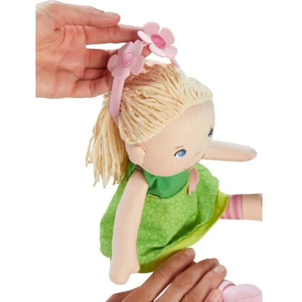 Puppen von HABA sind tolle Gefährten für Kinder. Sie haben fröhliche Gesichter, weiche, wattierte Körper und kuschelige Haare. Spielen, kuscheln, trösten oder Abenteuer erleben – mit diesen Puppen ist vieles möglich. Bei der großen Auswahl an Charakteren ist für jedes Kind der passende Spielgefährte dabei. Mali trägt ein süßes grünes Kleid und rosa Blümchen in ihrem blonden Haar. Praktisch: Ihre Kleidung ist dank Klettverschluss ruckzuck aus- und ebenso schnell wieder angezogen.Art.-Nr.: 1913234