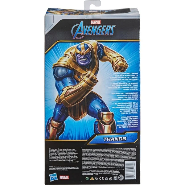 DER WARLORD THANOS LÄSST SICH VON NICHTS DAVON ABHALTEN, DAS GANZE UNIVERSUM ZU BEHERRSCHEN. Kinder werden eingeladen, sich mit Avengers Figuren und Rollenspiel-Artikeln im Stil der Marvel Comics ins Abenteuer zu stürzen. Mit dieser klassischen Spielzeuglinie spielen Kids die Action mit Hulk, Iron Man, Captain America und dem Rest des Teams nach, wenn die Helden Thanos gegenüberstehen – der dunkelsten Bedrohung, die das Universum je erlebt hat. Produkte sind jeweils separat erhältlich. Je nach Verfügbarkeit. Mit dieser Thanos Figur aus der Titan Hero Serie können sich die Kids gemeinsam mit dem schurkenhaften Warlord ins Abenteuer stürzen, um die Erde zu bedrohen. Wird ein Titan Hero Blast Gear Starter mit dem Port am Rücken dieser Figur verbunden, können Projektile abgefeuert werden. Der Titan Hero Blast Gear Starter ist zusammen mit Titan Hero Blast Gear Figuren erhältlich.Art.-Nr.: 1771697