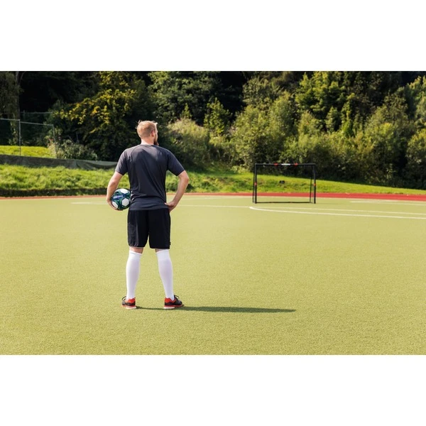 | Inhalt/Ausstattung | Hochwertiges Fußballtor mit Schaumstoff- Polsterung in schwarz/neonrot Stabiler pulverbeschichter Stahlrohrrahmen, 32mm Ø Maße 240 x 160 x 85 cm Leichte Clickmontage der beschrifteten Stangen Pfosten und Latte komplett mit EPE-Schaumstoff ummantelt, 80 mm Außendurchmesser Engmaschiges, wetterfestes Polyesternetz, Maschenweite 45 mm Ummantelung aus wetterfestem Tarpaulin-Material Klettverschlüsse zur Fixierung der Ummantelung 6 U-Heringe zur Standfixierung | ||