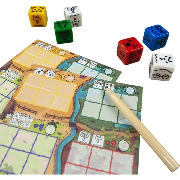 | Inhalt/Ausstattung | 1 Block mit Tierheimkarten, 6 Tierwürfel, 5 Bleistifte, Spielanleitung | ||