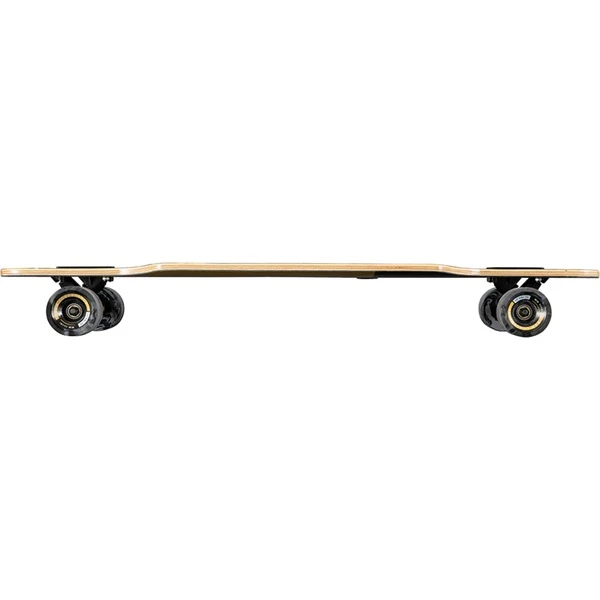 | Inhalt/Ausstattung | Deck aus 7-lagigem kanadischem Ahorn (86,4 x 22,2 cm), 7″ UB-Achsen aus strapazierfähigem Aluminium mit PU-Lenkgummis (SHR 90A), 70 x 51 mm Polyurethane-Rollen (78A) mit Marmor-Effekt und angeschliffener Lauffläche, ABEC-9 Kugellager aus Chromstahl, Griptape mit Ausschnitt, bedruckt (80S) | ||