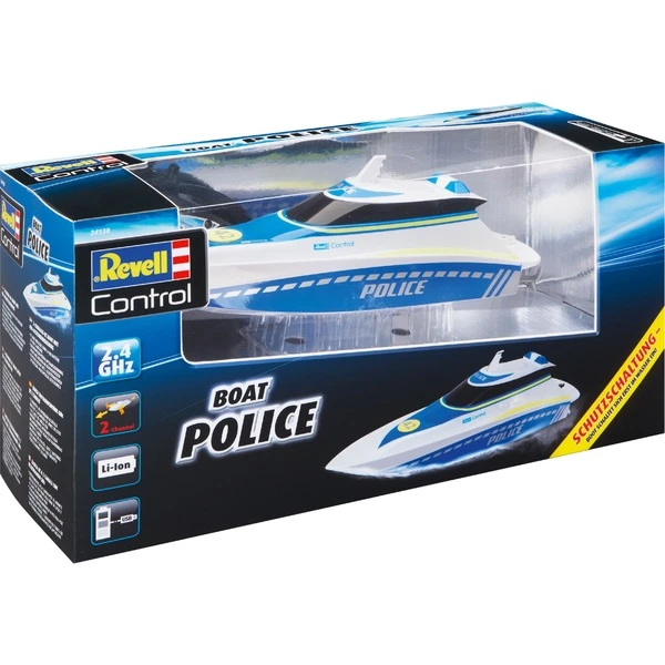 Hier haben Verbrecher keine Chance! Mit dem schnellen und wendigen Polizeiboot kontrolliert man die Gewässer. Zwei Elektromotoren und der integrierte Lithium-Ionen-Akku liefern die nötige Power und eine lange Fahrzeit. Dank des mitgelieferten USB-Ladekabels ist man jederzeit wieder einsatzbereit. Die komplett gekapselte Elektronik ist auch bei wilden Fahrmanövern vor eindringendem Wasser geschützt. Durch die 2,4 GHz-Technologie kann man mit mehreren Freunden gleichzeitig Boote steuern, ohne dass man sich gegenseitig stört. Die enthaltende Schutzschaltung verhindert das Anlaufen der Propeller außerhalb des Wassers. So besteht keine Verletzungsgefahr.Art.-Nr.: 1725527