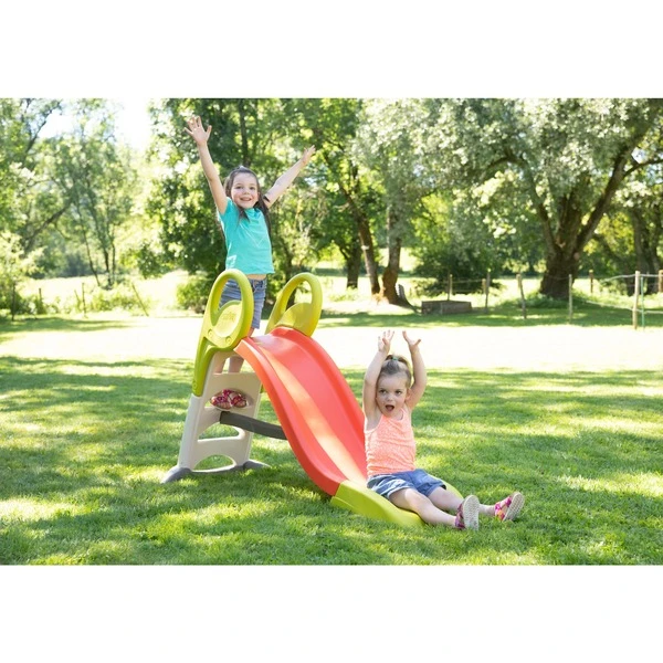 Die KS Rutsche von Smoby: Rutschspaß auch an heißen Sommertagen! Die KS Rutsche von Smoby besticht nicht nur durch ihr farbenfrohes Design und ihre 150 cm Rutschlänge, sie hat auch noch ein ganz besonderes Extra: sie verfügt über einen Wasseranschluss für einen Gartenschlauch und verwandelt sich so im Handumdrehen in eine Wasserrutsche. Der breite Rutschauslauf sorgt für weiche Landungen. Die Leiter ist mit dem Geländer, dem breiten Standfuß und dem Anti-Rutsch-Treppenstufen besonders sicher und stabil. Die Rutsche kann kinderleicht zu ihrer Gesamtgröße (Gesamtlänge: 159 cm, Höhe: 100 cm, Breite: 68 cm) montiert werden. Zum praktischen Verstauen lässt sie sich genauso schnell und einfach demontieren. Die Rutsche überzeugt nicht zuletzt durch den UV-stabilen Kunststoff, der besonders widerstandsfähig gegen Wettereinflüsse und Ausbleichung ist. Wie alle Smoby-Produkte entspricht sie den neuesten Anforderungen an die Produktsicherheit.Art.-Nr.: 1195461